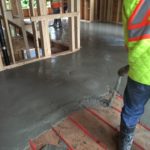 Finishing refers to any final treatment of the concrete surface after it has been consolidated to achieve the desired properties. This can be as simple as pushing a wide blade over the fresh concrete surface to make it flat (screeding). Floating and troweling is a process of compacting and smoothing the surface which is performed as the concrete is starting to harden. After concrete has hardened, mechanical finishing can be used to roughen the surface to make it less slippery or to polish the surface as a decorative step to bring out the beauty of a special aggregate such as marble chips. Peak Concrete LTD. employs the use of concrete dyes and surface molds to emulate the appearance of bricks, decorative pavers, or even ceramic tile.[/vc_column_text][/vc_column][/vc_row]